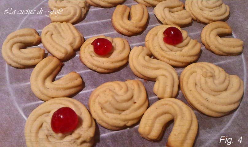 Une fois les biscuits réalisés, laisse-les reposer 1 h au réfrigérateur puis fais cuire dans un four statique préchauffé à 190°C pendant 5′, puis baisse à 180°C pendant encore 8′-10′. Les biscuits ne doivent pas devenir foncés mais juste dorés. Sortez-les du four et laissez refroidir les biscuits de pâte sablée montée sur une grille.