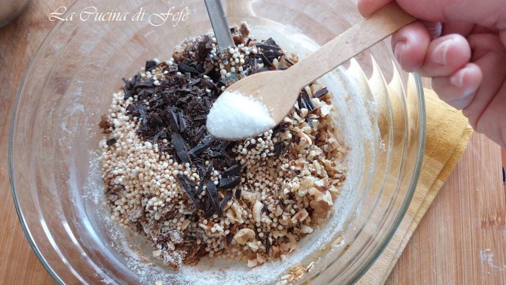 🟣*Pourquoi hacher finement le chocolat et le mélange de fruits à coque : ce choix est recommandé pour permettre une étalement plus facile de la pâte et faciliter le découpage des biscuits eux-mêmes, qui sinon, s’ils sont trop grossiers, risqueraient de se détacher facilement. Il est permis d’en laisser quelques-uns légèrement plus grossiers, mais il vaudrait mieux hacher le reste finement.