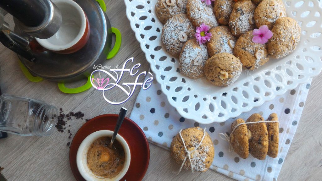 Les journées automnales de ces dernières semaines m’ont soudainement catapultée à mes après-midis tant aimés de tisane avec mes amies ! J’aimais organiser de véritables moments de pur détente, dorlotant ceux que j’aimais avec une table riche en gourmandises préparées par moi et une variété infinie d’infusions et de tisanes à faire pâlir d’envie tout un supermarché ! Beaucoup de bavardages, confidences, rires et heures agréables en compagnie, puis plus rien ! Pendant deux ans, j’ai dû suspendre cette saine et bonne habitude, mais maintenant je sais enfin que je peux reprendre comme avant. Ces biscuits au café, noisettes et chocolat sont ce réconfort que nous pouvons tous nous accorder le matin, pour commencer la journée avec énergie, ou au moment du café après le repas sans culpabilité ! Je les ai réalisés en préparant un excellent café expresso avec ma cafetière sicilienne inséparable, Kamira ! Je l’emporte même en voyage et c’est le meilleur choix que j’aurais pu faire ! Préparer le café est un rituel intemporel, un symbole de statut pour nous, Italiens, une tradition qui se perpétue du matin au soir parfois ! Mieux encore s’il est accompagné de petits biscuits qui rappellent son goût et son arôme, n’est-ce pas ? En effet, une fois cuits, un parfum enivrant et enveloppant de café se répandra dans votre cuisine et vous pourrez les tremper dans du lait, du café, une tisane ou les grignoter au goûter ! Et le meilleur, c’est qu’ils sont sans beurre ! Sains, gourmands et aromatiques, que demander de plus ?