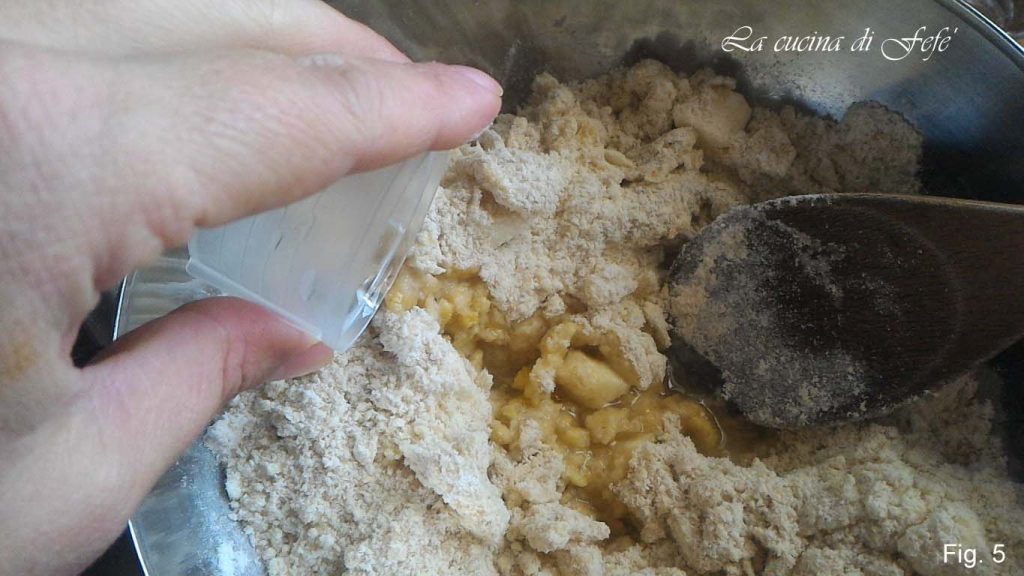 Incorporez ensuite le beurre ramolli et coupé en morceaux (fig. 4).