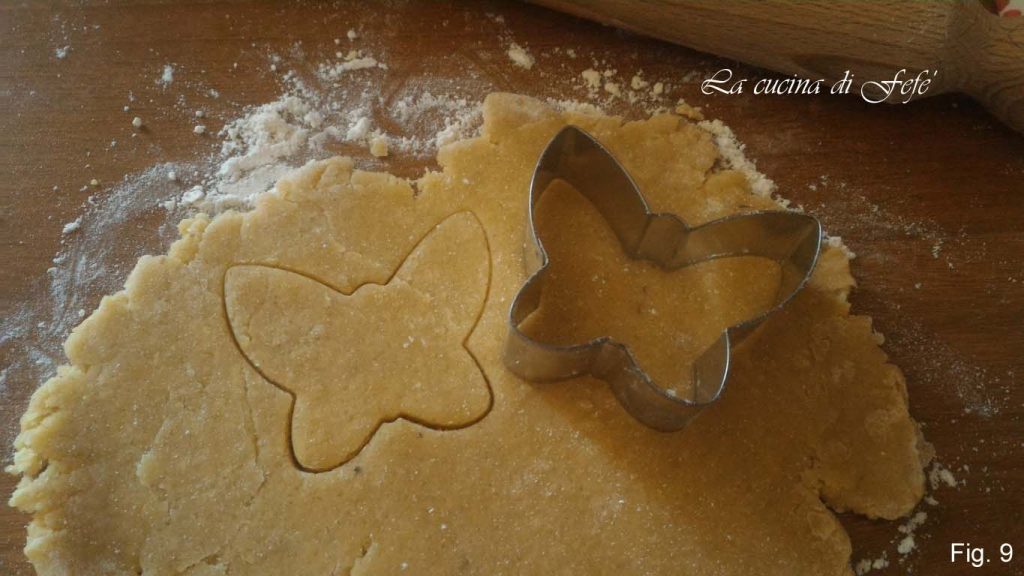 Enveloppez de film alimentaire et laissez au frigo pendant 1 h. Ensuite, sur une planche enfarinée, étalez à l’aide d’un rouleau à pâtisserie la moitié de la pâte à une épaisseur de 4 mm et découpez vos biscuits à l’aide d’un emporte-pièce de votre choix (fig. 9).