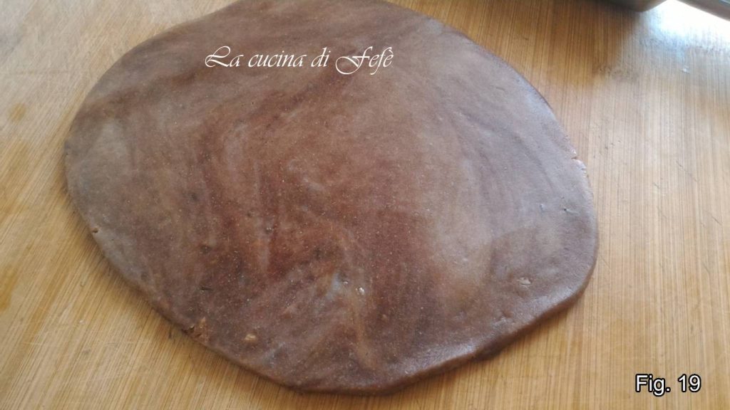 Après le temps de repos au réfrigérateur, avec l’aide d’un rouleau à pâtisserie, étalez la première pâte à une épaisseur de 3-4 mm (fig. 19).