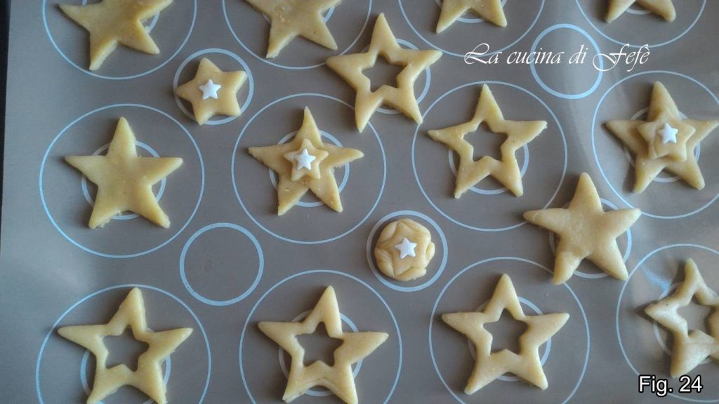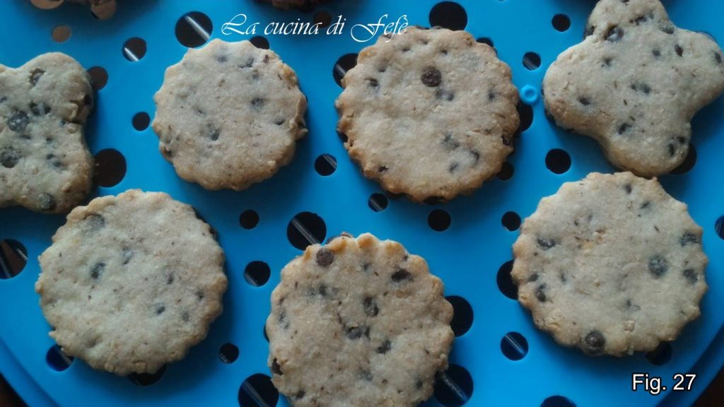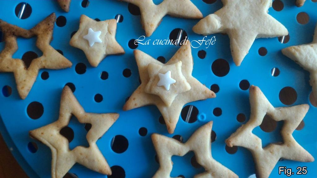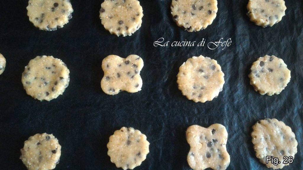 Placez-les au congélateur pendant 10′, puis faites-les cuire à 180°C pendant 9′-10′, ou jusqu’à ce qu’ils soient légèrement dorés, puis laissez-les refroidir sur une grille à pâtisserie (fig. 25).
