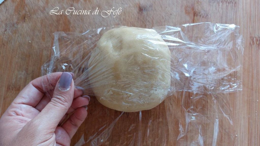 Tu devras obtenir une pâte lisse et homogène. Enveloppe la pâte avec du film alimentaire et fais-la reposer au réfrigérateur pendant au moins 2 h.