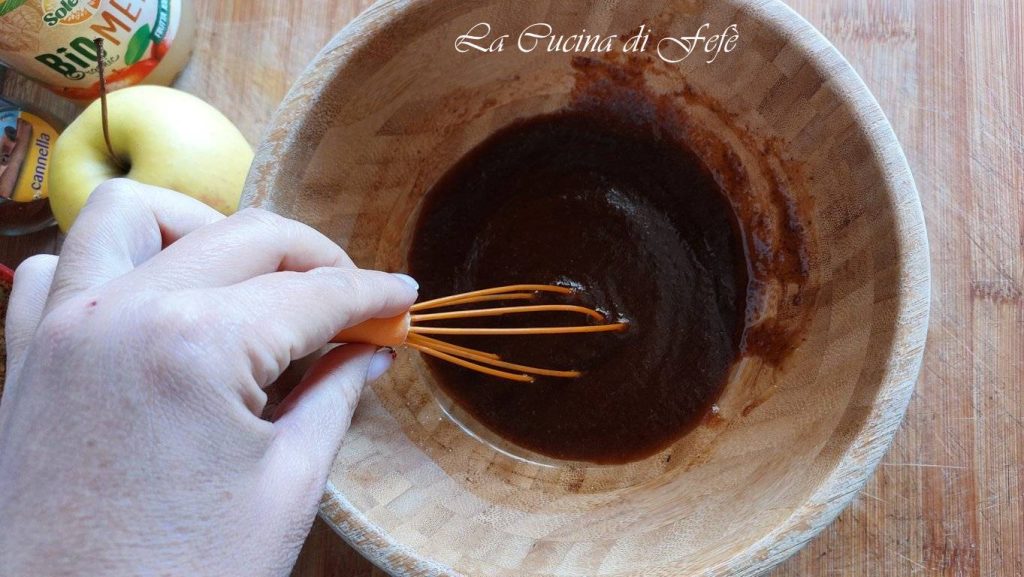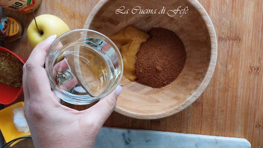 • Dans un grand bol, mélange la compote de pommes avec le sucre de coco et l’huile de graines.