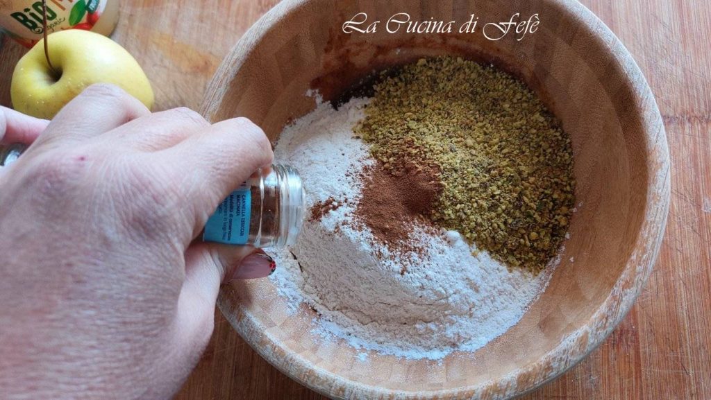 • Ajoute progressivement la farine tamisée avec la levure pour gâteaux (ou une pincée de bicarbonate). À ce stade, incorpore également la farine de pistaches et la cannelle.