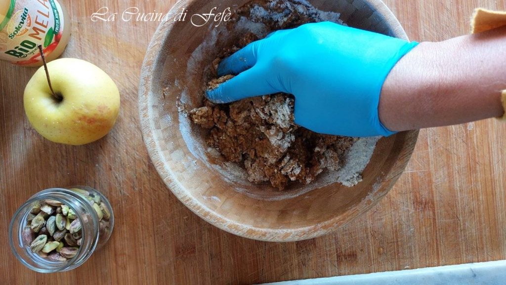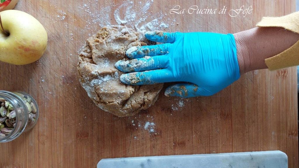 🟣*Si la pâte est trop collante, laisse-la reposer au réfrigérateur pendant 15 minutes; l’amidon de la farine et les fibres de la pomme se stabiliseront, la rendant plus facile à modeler.