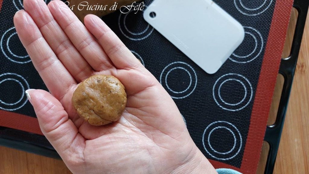 • Avec les mains légèrement humidifiées, crée des boules pesant environ 20 g ou de la taille d’une noix.