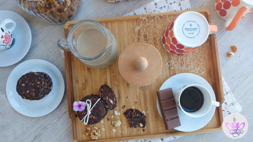 Généralement, lorsque j’ai envie de quelque chose de sucré, j’essaie de préparer des biscuits à l’avance avec ce que j’ai à la maison afin de les avoir toujours prêts aussi bien pour le petit déjeuner, que comme un en-cas sain pour couper la faim pendant mes journées. Ceux que je partage aujourd’hui sont réalisés avec de la farine complète et des flocons d’avoine, excellents aliments riches en nutriments et en propriétés bénéfiques. Le reste des ingrédients les enrichit de goût avec un mélange de fruits secs, chocolat, cacao, une légère note de café et un édulcorant naturel comme le sucre de coco.