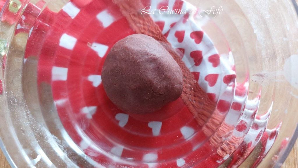 Pétris rapidement à la main jusqu’à ce que le pâte devienne lisse et homogène. Aplatis la pâte, enveloppe-la dans le film et laisse-la reposer au réfrigérateur pendant 30′. Cette étape est cruciale: elle permet aux fibres de betterave de s’hydrater et stabilise la couleur.