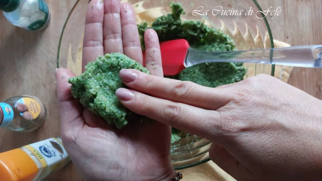 Travaillez rapidement tous les ingrédients, en pressant avec une fourchette jusqu’à obtenir une consistance homogène, compacte et travaillable. Si elle est encore trop molle, vous pouvez ajouter une cuillère de chapelure à la fois.