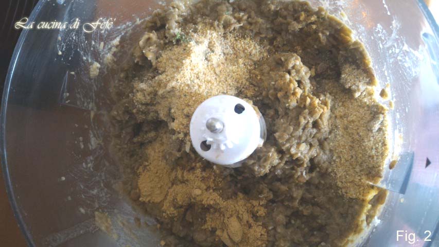Mixez jusqu’à obtenir une purée assez ferme. Si le mélange semble encore trop mou, ajoutez peu à peu quelques autres cuillères de chapelure. Mettez le mélange au réfrigérateur pendant 30′, puis, avec les mains légèrement humides, formez de petites boulettes de la taille d’une noix (fig. 4).