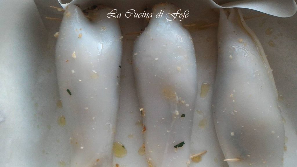 🟣* Le temps de cuisson peut varier en fonction des performances du four et de la taille des mollusques. En général, je vous conseille de faire attention à ne pas prolonger trop la cuisson, cela rendrait la chair du calamar dure et la farce sèche.