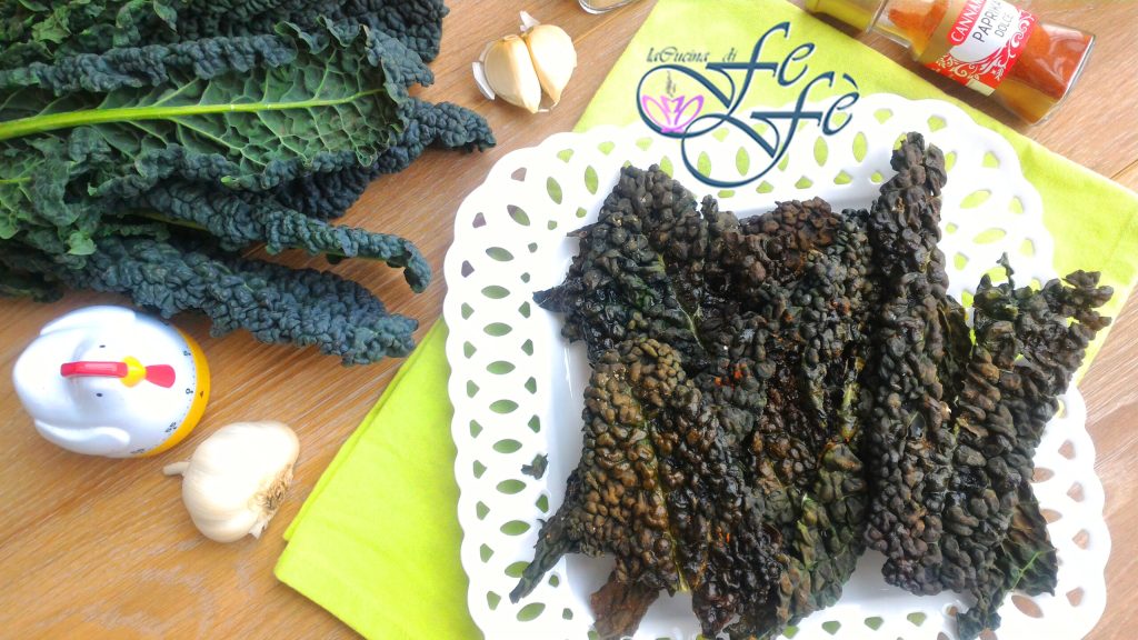 J’ai découvert que le chou kale, surtout cuit, n’est pas très photogénique et pourtant c’est l’un des légumes d’hiver les plus vertueux et savoureux qui existent ! Un véritable super aliment aux propriétés bénéfiques notables. Et depuis que je l’ai découvert, je suis tellement tombée amoureuse que j’en ai fait le plein, en expérimentant chaque fois des recettes toujours différentes et délicieuses ! Toutefois, si vous n’avez jamais essayé de déguster ce légume sous forme de chips, eh bien, vous devez absolument essayer ! Elles représentent en effet la collation parfaite au format hypocalorique car elles ne sont pas frites, mais cuites au four ! Ce sont le snack idéal pour grignoter quelque chose à tout moment de la journée où vous avez ce petit creux, peut-être avant le dîner ou devant la télé, sans grande culpabilité. Et en second lieu, vous aurez toujours un atout dans votre manche pour préparer rapidement un apéritif salé de style vegan avec un effet étonnamment croustillant et savoureux !