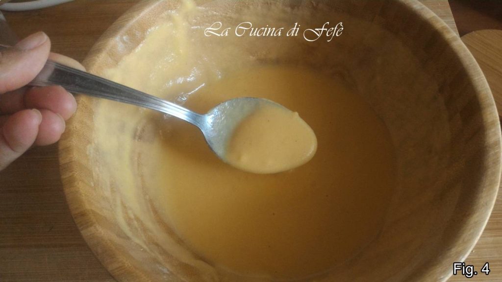 • Enfin, délayez avec l’eau en filet, en continuant de mélanger (fig. 3).