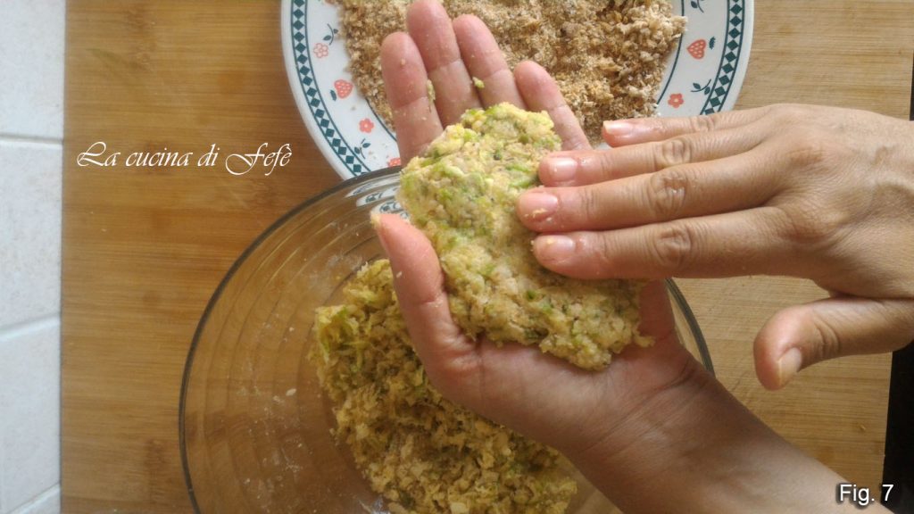 • Avec les mains encore humides, prélevez une portion de ce mélange et formez vos côtelettes, en les compactant bien et en leur donnant la forme que vous préférez (fig. 7).