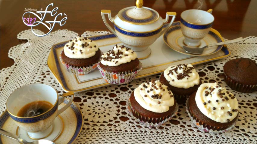 J’ai toujours eu une passion pour les célèbres cupcakes, les inimitables et populaires petits gâteaux d’origine américaine. Littéralement, ils sont appelés « gâteaux-tasses » et sont utilisés pour accompagner le thé durant les moments gourmands de l’après-midi, mais désormais, étant répandus depuis quelques années aussi en Italie, ils n’hésitent pas à être préparés pour de nombreuses autres occasions festives. Qui ne les a pas préparés au moins une fois ? Je vous avoue que j’en ai fait des énormes portions avec ces petites gourmandises ! Il y a quelque temps, je les avais préparés avec une crème délicate au citron qui a reçu de nombreux éloges et dont je posterai bientôt la recette. Je projette également de les réaliser avec des betteraves, pour un effet « red velvet » qui aura sûrement du succès ! En attendant, ceux que je vous propose aujourd’hui sont fabuleux. Une base au cacao douce comme un nuage surmontée d’un glaçage velouté et enveloppant au chocolat blanc qui contrastera avec l’amertume du chocolat. Bouchée après bouchée, rien ne sera plus satisfaisant ! Ils sont vraiment très simples à réaliser et, associés à d’autres cupcakes de goûts et couleurs différents, auront un effet scénique vraiment remarquable ! De plus, ils sont aussi sans gluten, donc parfaits pour les personnes cœliaques ! Qu’attendez-vous pour les préparer ?