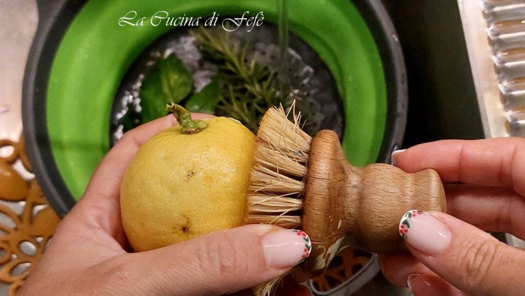 Avant la préparation, lave soigneusement tous les ingrédients prévus dans la recette sous le jet d’eau courante et retire en particulier tout résidu de la peau du citron à l’aide d’une brosse alimentaire.