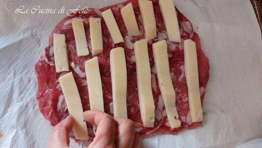 • Dispose-les sur les tranches de salami en les répartissant uniformément.