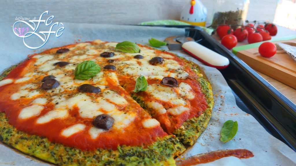 Si, comme moi, vous êtes toujours à la recherche de recettes saines et authentiques mais qui éveillent aussi le palais, vous êtes au bon endroit! Et ici, la fantaisie nous aide beaucoup ainsi que les brocolis! Je vous dis d’abord que, appartenant à la famille des choux, ils sont considérés comme un aliment aux propriétés anticancéreuses incontestées. Ils contiennent en effet un pourcentage élevé d’antioxydants essentiels pour la santé de nos os, du foie et du cerveau. Leur consommation régulière réduit également considérablement le cholestérol LDL, c’est-à-dire le mauvais, au profit du bon, ainsi que les triglycérides, qui sont les principaux facteurs de risque pour les maladies cardiaques. Certes, d’un autre côté, tout le monde n’apprécie pas ce légume bien qu’il soit précieux, en particulier les enfants, mais avec cette recette, vous verrez qu’il sera beaucoup plus facile d’introduire un légume si important dans votre alimentation pour la santé et le plaisir pour le palais. Il s’agit d’une pizza astucieuse à base de brocolis, en style végétarien et vraiment hypocalorique. De plus, en raison de ses caractéristiques, elle est sans farine et sans levures, donc elle vous surprendra beaucoup! Il vous suffira de mixer les brocolis puis de les mélanger avec le reste des ingrédients et d’étaler le tout dans un moule. Vous obtiendrez la base d’une pizza insolite et savoureuse, que vous pourrez enrichir comme vous le souhaitez. Je vous propose le classique garniture de la pizza margherita, avec tomate et mozzarella, et l’ajout de quelques olives noires, qui s’accorde merveilleusement bien! Une fois prête, vous pourrez la couper en tranches comme vous le feriez avec une pizza normale et la servir comme un plat unique et informel! Essayez-la aussi et dites-moi ensuite!