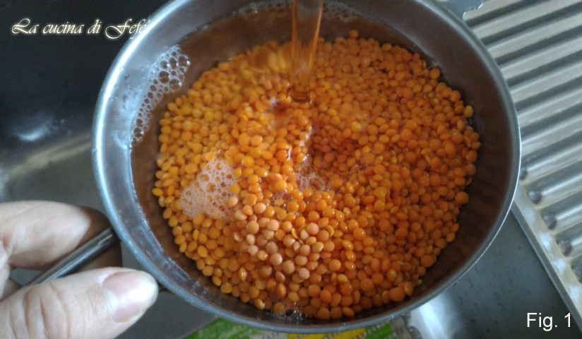• Ajoutez les lentilles corail et faites-les griller pendant 1′-2′ à feu vif.