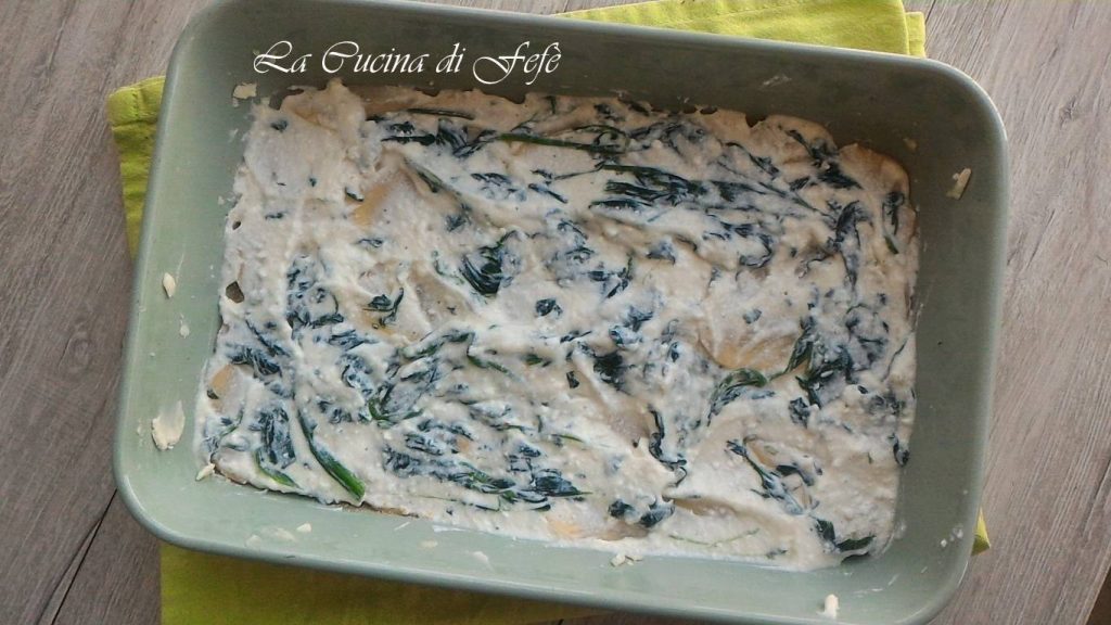 🟣Pour une version non végétarienne, tu peux enrichir la farce si tu le souhaites, en ajoutant à la crème de ricotta aussi du jambon cuit haché ou en le distribuant en tranches directement entre la première et la deuxième couche.