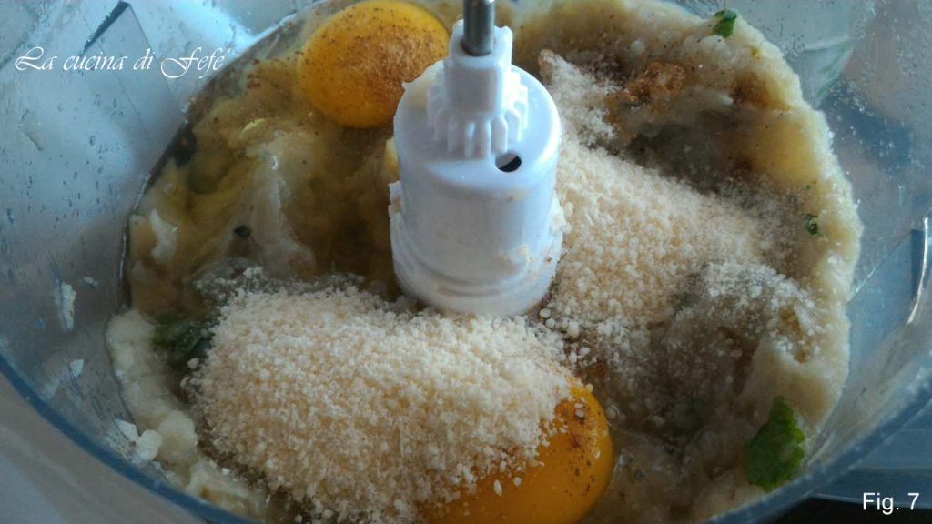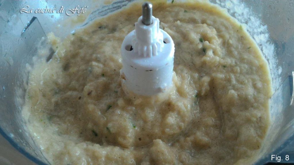 Ajoutez enfin le parmesan râpé, la noix de muscade, le lait seulement si nécessaire, et mixez par à-coups (fig. 7).