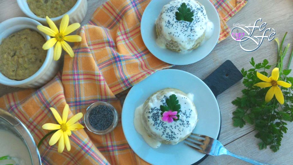Aujourd’hui, je veux vous proposer une recette dont l’inspiration est née à Turin, lors d’une foire de voitures anciennes à laquelle chaque année, autour de février, mon mari et moi participons, sauf en cas de pandémie ! Eh bien oui, un soir, assise dans un restaurant typique de Turin, j’ai choisi dans le menu les flans de topinambours, des tubercules extraordinaires, malheureusement souvent peu valorisés. Leur saveur rappelle beaucoup celle de l’artichaut, tandis que leur aspect est celui de la pomme de terre. Ces flans m’ont tellement conquise, que j’ai décidé à mon retour en Sicile de les préparer moi-même ! La chance était de mon côté, car les topinambours ne sont pas facilement disponibles, du moins par chez moi, mais je savais que l’oncle de mon mari les cultive depuis toujours, et ainsi, grâce à sa générosité et disponibilité, j’ai pu mettre un plat vraiment sublime sur la table ! La particularité des topinambours, outre leur saveur, réside dans leur teneur élevée en fibres et leur faible quantité d’amidon, ayant ainsi un effet probiotique : pour ces caractéristiques, le topinambour est un atout pour l’alimentation des diabétiques, et étant également hypocalorique, il convient aussi à ceux qui souhaitent suivre un régime pauvre en graisses. En somme, ne pas les essayer serait vraiment dommage, et ces flans vous conquerront par leur délicatesse et leur consistance ! Ils se cuisent au bain-marie au four, donc ils restent humides et moelleux ! Un plat principal raffiné et élégant servi avec une crème de stracchino et des graines de pavot, pour une note légère de contraste vraiment spéciale !