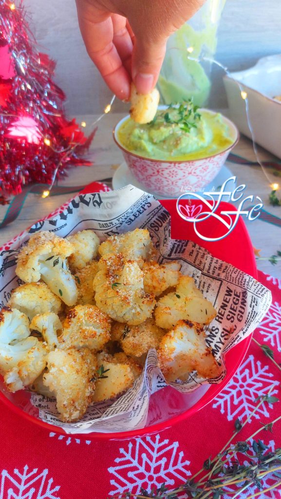 Et le Nouvel An est également derrière nous ! Mis à part le dernier rendez-vous pour l’Épiphanie, le cercle des fêtes de Noël se termine et nous revenons un peu à la normalité ! Cela signifie non seulement reprendre notre routine, mais aussi essayer de mettre sur la table des plats plus sains et authentiques de style détox pour contraster les grandes agapes de ces festins. La recette que je vous propose était pour moi un finger food des fêtes passées, car même lors de ces occasions, j’essaie toujours d’être modérée et de ne pas exagérer ! Cependant, vous pouvez certainement la proposer à toute la famille comme accompagnement sain et en même temps savoureux ! Je l’ai accompagnée d’une mayonnaise végane réalisée avec les feuilles de rebut du chou-fleur lui-même, donc avec un seul légume, vous pourrez préparer deux recettes et ainsi satisfaire votre envie de quelque chose de simple, sans béchamels ou fromages, et très digeste sans renoncer au goût ! En plus, préparer ces fleurettes de chou-fleur gratinées est vraiment super facile et rapide, donc zéro tracas en cuisine et beaucoup de saveur à table grâce au gratinage au four ! Le tout en style végétarien naturellement ! Essayez-les et vous me direz !