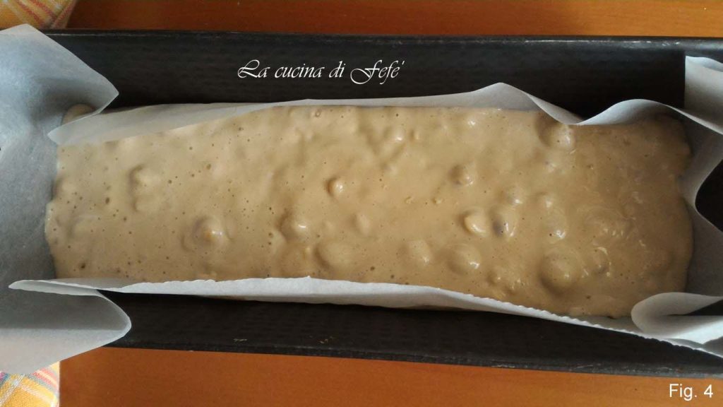 Enfin, ajoutez les fruits à coque hachés et versez la préparation dans un moule à cake de 25×11 recouvert de papier sulfurisé (fig. 4).