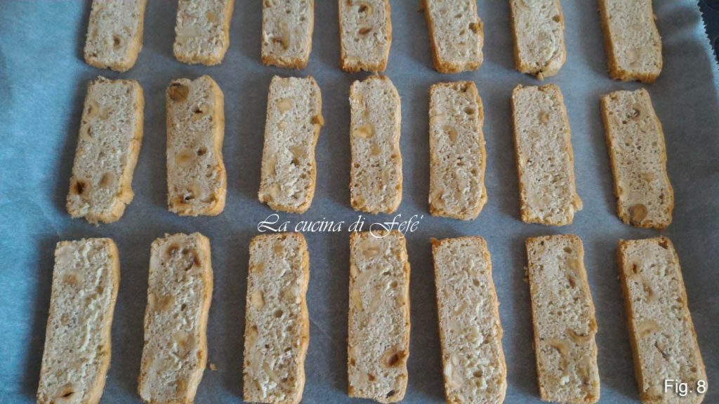 Disposez-les sur une plaque tapissée de papier sulfurisé et enfournez à nouveau à 150°C pendant 15′, puis retournez-les et poursuivez la cuisson pendant 3′ supplémentaires (fig. 8).