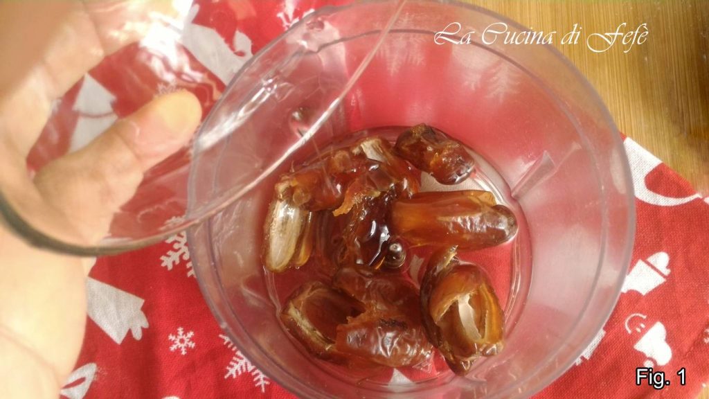 Pour que les dattes s’intègrent uniformément, faites-les tremper dans un peu d’eau tiède pendant 15′, puis transférez-les dans un mixeur ou un hachoir puissant et mixez-les par à-coups avec l’huile.