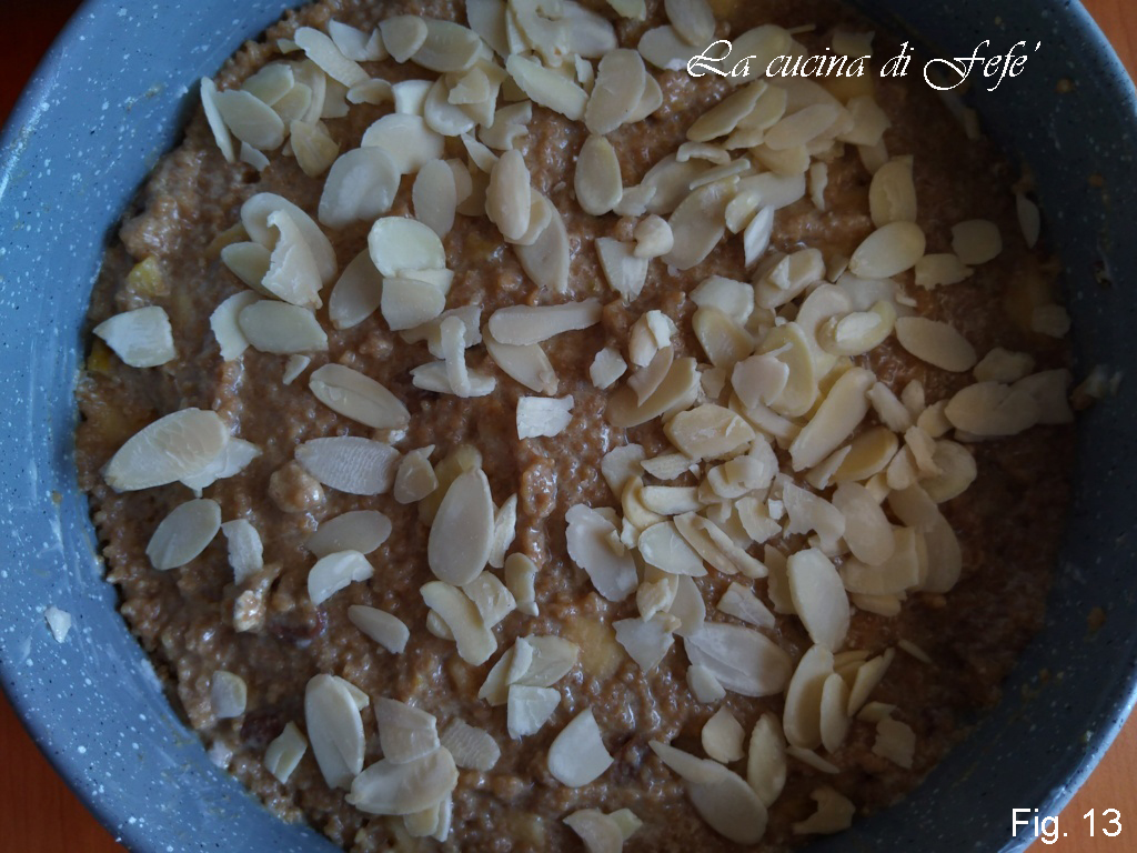 Couvrez toute la surface avec les amandes effilées et mettez au four préchauffé à 180°C pendant environ 45′. Le test du cure-dent est toujours fiable (fig. 13).