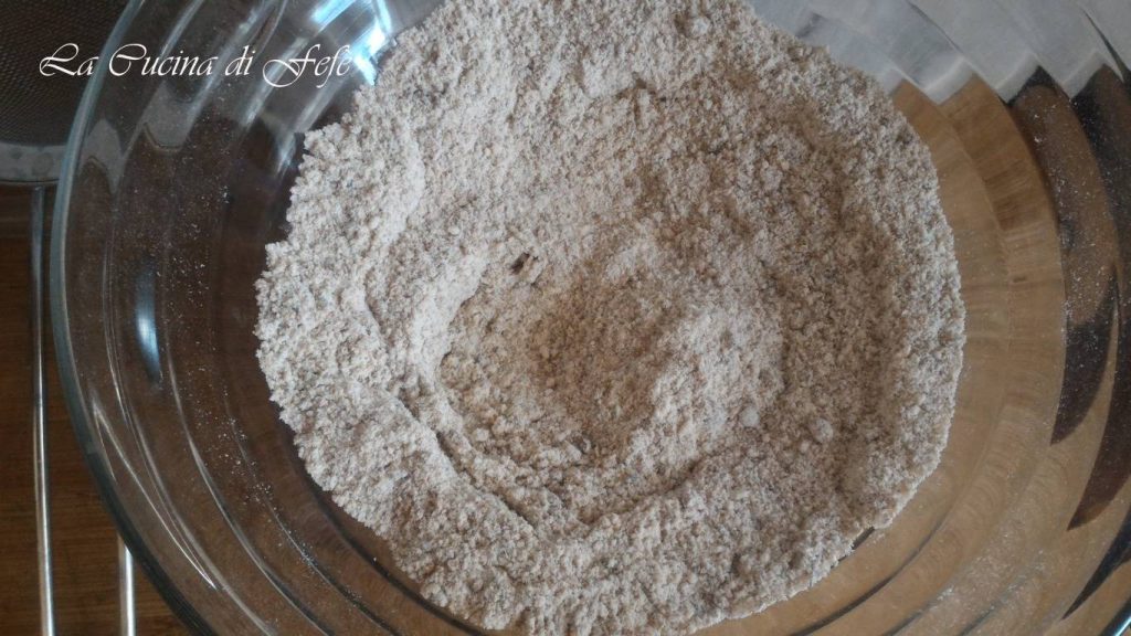 Dans un grand saladier, mélangez toutes les poudres en tamisant la farine type 1 et la levure. Ensuite, ajoutez la farine de noisettes, le sucre de canne complet et une pincée de sel.
