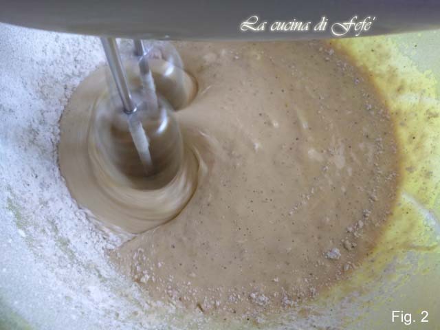 Commencez par travailler avec l’aide des fouets électriques les œufs à température ambiante avec le sucre de canne (fig. 1).