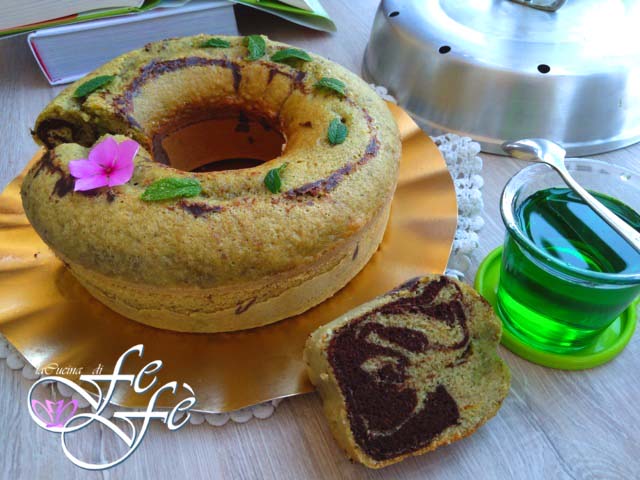 Et me voilà, avec un autre rendez-vous – désormais presque régulier – avec mon meilleur ami en cuisine : le moule Versilia! Chaleur, je ne te crains pas, car le four est bien éteint!!! Et pourtant, j’aurai toujours la garantie d’un petit déjeuner spécial avec un dessert vraiment super! Il s’agit d’une combinaison particulière car la pâte au cacao et celle à la menthe se mêlent pour créer un câlin bicolore incroyable qui surprendra bouchée après bouchée. L’ajout de quelques cuillères à café de sirop de menthe à la fin de la cuisson laissera le mélange légèrement humide, et si vous pensez que les feuilles de menthe ajoutées en surface ne servent qu’à des fins décoratives, vous vous trompez énormément! Il est impossible d’imaginer combien de fraîcheur et de saveur elles peuvent offrir au palais, sauf en la goûtant vous-même! En fait, je vous dirai, n’hésitez pas à en mettre beaucoup, vous me donnerez raison! Ce gâteau est irrésistible pour sa douceur et son moelleux, mais surtout, il est inimitable avec ses veinures internes qui rappellent le marbre. Bien sûr, avec le « four » magique, il est meilleur, mais si vous êtes encore en train de réfléchir et n’avez pas décidé d’acheter ce grand allié en cuisine, vous pouvez opter pour une cuisson plus traditionnelle – et dans ce cas, plus audacieuse – en le cuisant au four. Résultat garanti!