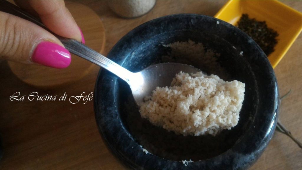• Pilez ensemble les deux premiers ingrédients avec des mouvements circulaires. Le résultat doit être une poudre pas trop fine et légèrement huileuse : seulement à ce moment-là, le gomasio est prêt.