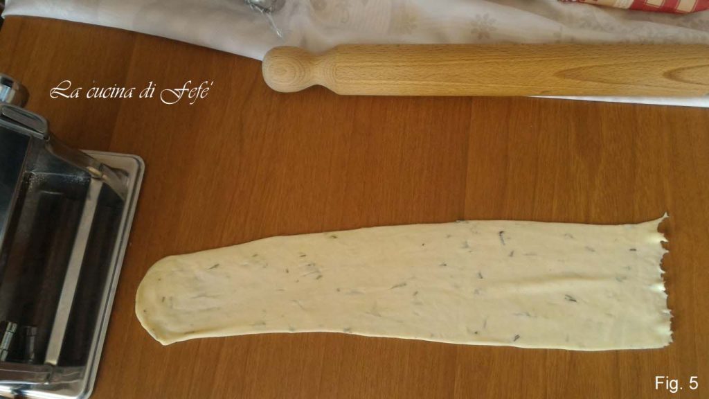 Ensuite, étalez-la avec une machine à pâtes jusqu’à obtenir une pâte d’une épaisseur de 2-3 mm (fig. 5).