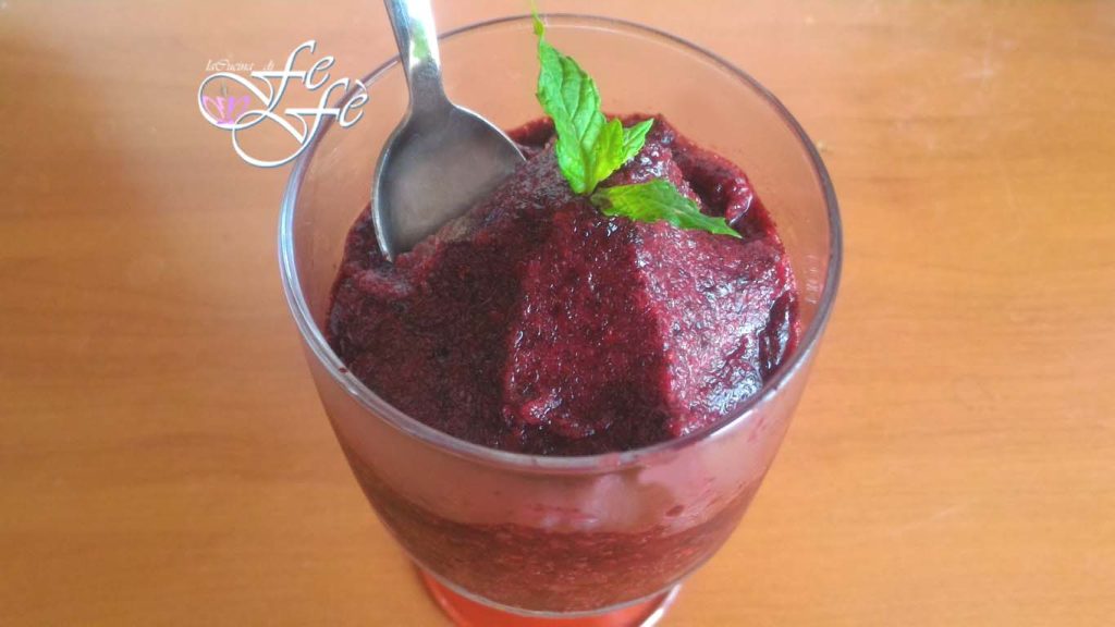 Qui a dit granité? Souvent confondu avec le sorbet, il s’en distingue par une texture plus granuleuse (d’où son nom) et crémeuse en même temps. Ici en Sicile, c’est un must! Qu’il fasse été ou hiver, pour nous Siciliens, cela ne fait aucune différence, car c’est toujours le bon moment pour se régaler, et pas seulement au petit-déjeuner, mais aussi au déjeuner et au dîner! À Catane, le granité par excellence est celui aux amandes, que j’adore d’ailleurs, mais durant la courte saison qui commence en juin et se termine en juillet, on peut profiter d’un fantastique granité aux mûres, surtout dans la région de Messine! Je vous dis, c’est d’une incroyable bonté! S’asseoir au bar et pouvoir demander un granité aux amandes avec une touche de mûres ou entièrement de mûres n’a pas de prix!!! Naturellement accompagné de la mythique brioche col tuppo! Mais quand on a l’opportunité de cueillir ces fruits directement de l’arbre, peut-on dire non à un fait-maison? Et voici ma recette super facile! Si vous avez des mûres à disposition, essayez! Je vous conseille de commencer à la préparer l’après-midi de la veille pour le petit-déjeuner du lendemain matin! Si vous êtes équipés d’une sorbetière ou d’une machine à glace, c’est encore mieux, ce sera un jeu d’enfant, mais au cas où vous seriez dépourvus de ces outils pratiques pour accélérer le processus, je vous donnerai quelques astuces pour la mantecatura manuelle et obtenir tout de même une excellente consistance! Ce sera plus fatigant, mais cela en vaudra vraiment la peine! Un remerciement spécial à mes oncles Sebastiano et Anna pour cette délicieuse matière première, dont la douceur et la générosité ont rendu cette préparation encore plus spéciale!