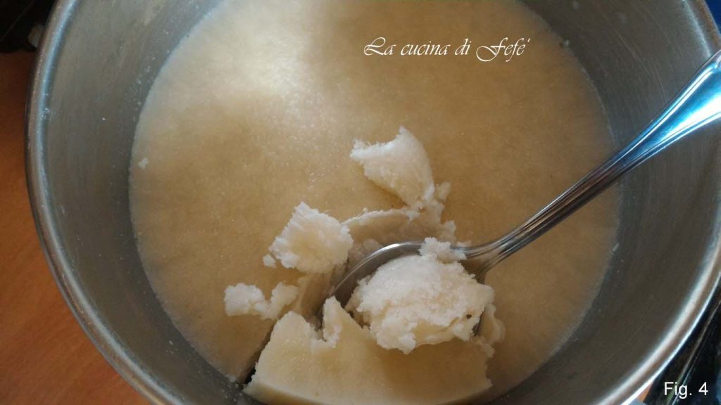 Dans une casserole, faites tiédir l’eau pendant 1′. Éteignez ensuite et ajoutez la pâte d’amande coupée en gros morceaux.