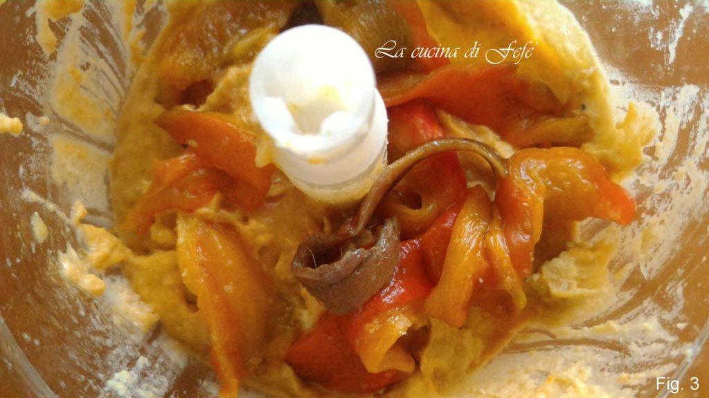 Mixez le tout par étapes jusqu’à obtenir une crème épaisse et compacte. Transférez dans un bol et complétez la présentation avec une fine tranche de poivron et un filet d’huile d’olive juste avant de servir.