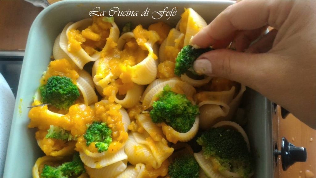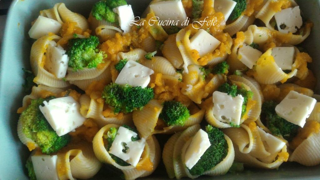 • Et voilà… les lumaconi avec potiron et brocolis farcis au four sont prêts à être dégustés !