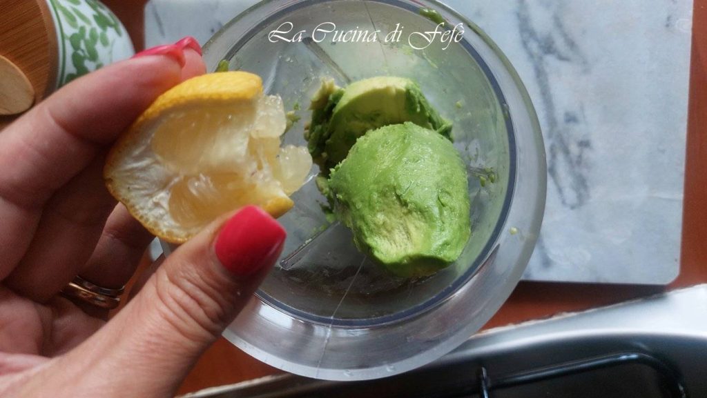 Récupère la chair de l’avocat avec une cuillère, transfère-la dans le bol d’un mixeur et ajoute le jus de citron filtré.