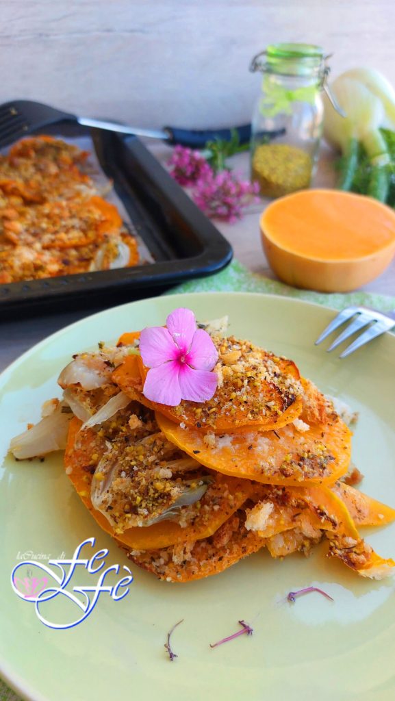 Et voilà… votre mille-feuilles de courge et de fenouils gratiné au pistache est prêt à être dégusté !