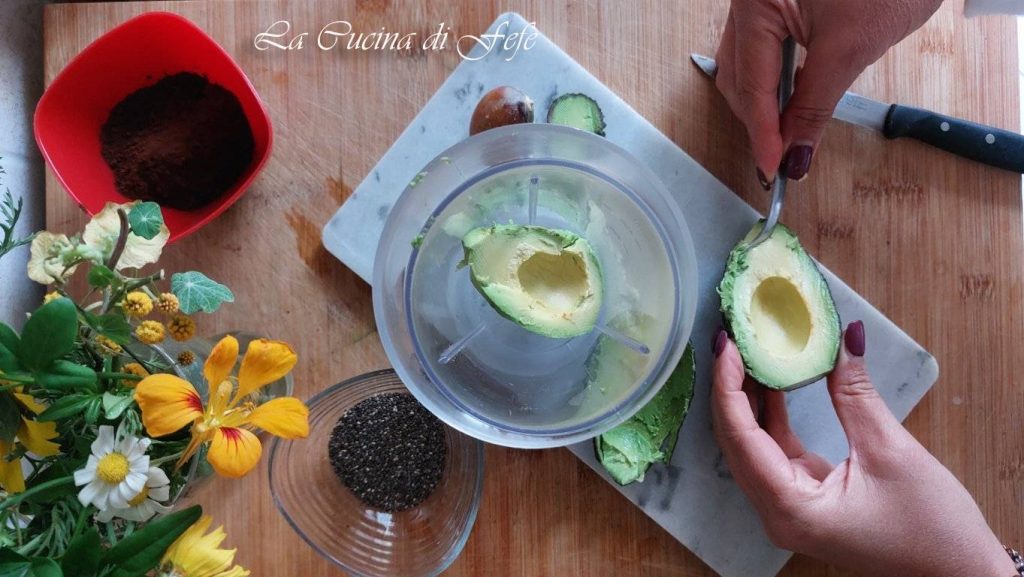 L’avocat est un fruit aimé par beaucoup pour sa saveur délicate et sa texture crémeuse et veloutée. Il est originaire d’Amérique Centrale, mais ces dernières années, grâce à la popularité de ses nombreuses propriétés nutritives, on trouve des cultures aussi en Europe. Ici en Sicile par exemple, on peut trouver plusieurs producteurs locaux, ce qui pour moi est une bénédiction, vu la réaction allergique que ceux provenant de l’étranger me provoquent, contrairement à ceux achetés sur place! Un détail non négligeable, tu ne crois pas? Un autre aspect à ne pas sous-estimer est aussi sa saisonnalité! Bien qu’il soit disponible toute l’année dans de nombreux supermarchés, la période idéale pour savourer les avocats va de novembre à mai! De cette façon, ils seront non seulement plus savoureux, mais aussi plus nutritifs, ce qui en fait un excellent allié pour la santé! Et voici une idée pour les introduire dans ton alimentation et pour accueillir le printemps! Un délicieux et crémeux dessert à la cuillère qui se prépare facilement et en très peu de temps, sans beurre et sans œufs. Un petit-déjeuner ou goûter sain et follement gourmand, parfait pour faire le plein de vitamines, minéraux et acides gras bons! Je pourrais le définir comme un croisement entre un pudding traditionnel au chia à base de graines de chia et une mousse au chocolat, mais si tu n’as expérimenté aucun des deux, ce dessert te surprendra incroyablement!