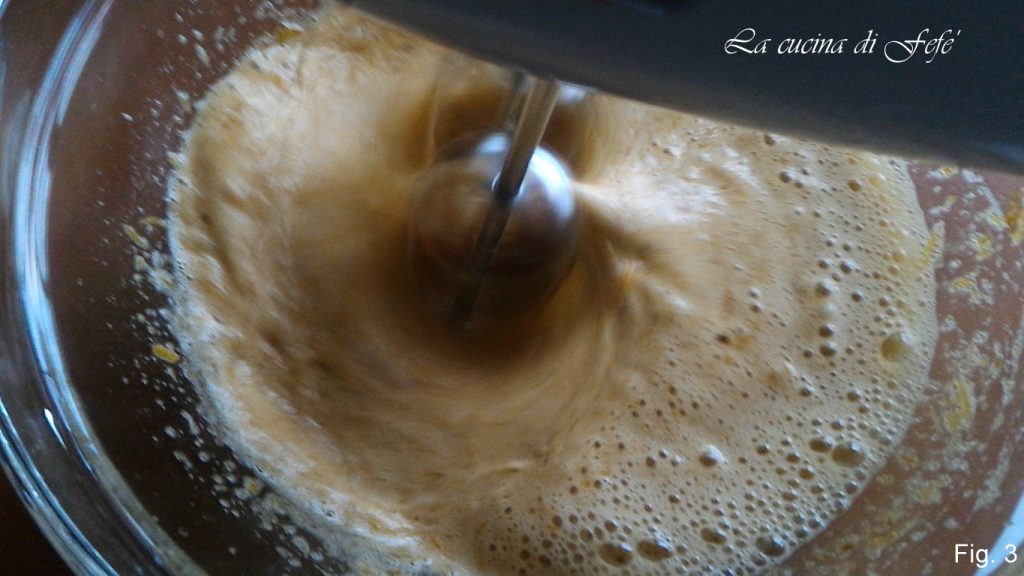 Travaillez les ingrédients avec les fouets électriques jusqu’à obtenir un mélange mousseux (fig. 3).