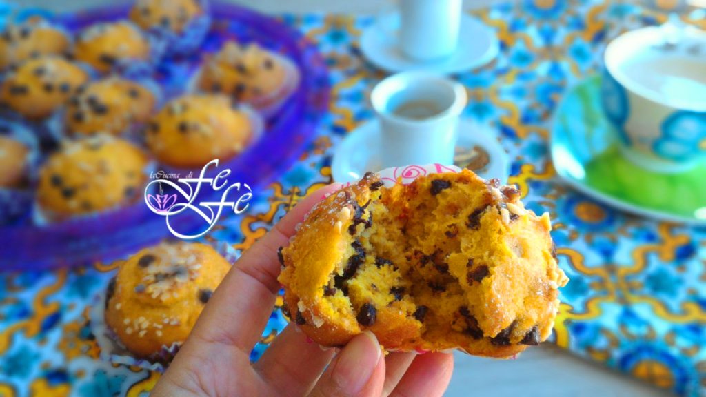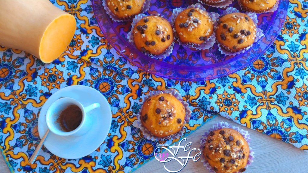 C’est officiel ! Les températures ont rapidement chuté ici en Sicile aussi ! Il y a deux jours, je portais encore un t-shirt et des chaussures ouvertes, et maintenant je dois me couvrir avec une écharpe et une veste pour éviter de prendre un rhume saisonnier ! Quand le froid commence à s’emparer de moi, mon envie de pâtisserie se déclenche automatiquement, celle que l’on peut déguster au petit-déjeuner, mais surtout l’après-midi devant une agréable tasse de thé fumant. Et quoi de mieux que l’incontournable légume d’automne pour cela ? Voici donc mes muffins à la citrouille, avec plein de morceaux de noisettes et des pépites de chocolat, qui, lorsque vous les croquez, vous ne pouvez que pousser des soupirs de pur plaisir ! Vous voyez l’idée ? Moelleux et humides à l’intérieur grâce à la pulpe de citrouille, ces douceurs sont parfaites pour toutes les occasions. Les préparer est plus simple que de vous décrire à quel point ils sont bons et vous pouvez me croire sur parole, ils disparaîtront aussi vite que du pain ! Pour cette recette, j’ai utilisé un type particulier de citrouille, la Butternut, qui m’a déjà procuré de nombreuses satisfactions cette année en termes de douceur. Mais vous pouvez utiliser celle que vous trouverez, à condition qu’elle soit sucrée. Vos enfants en raffoleront et vous aurez la satisfaction de leur offrir un dessert sain, authentique avec une touche de gourmandise, ce qui ne gâche rien !