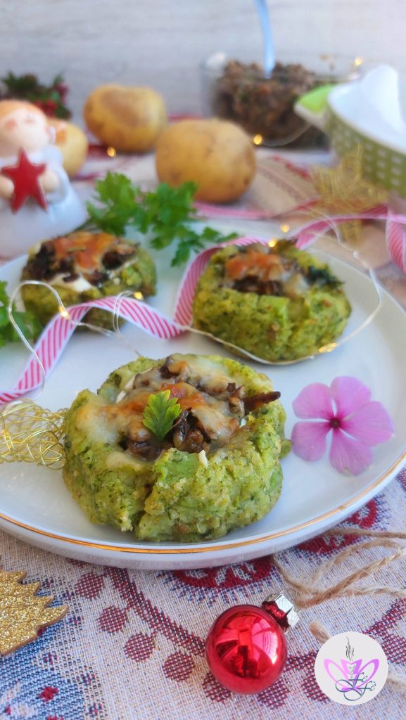 Et voilà… les nids de pommes de terre et brocolis farcis à la ricotta et aux champignons sont prêts à être dégustés !