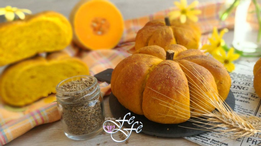 Je partage la recette de ces merveilleux pains à la citrouille avec une grande joie après au moins un an d’attente pour les réaliser ! Je ne saurais dire pourquoi j’ai mis autant de temps à me décider, peut-être distraite par d’autres projets ou simplement parce qu’ils étaient trop à la mode pour être la énième à les reproduire ! Ce fut probablement la combinaison de ces deux facteurs qui m’a fait hésiter, mais j’admets que j’étais très tentée et l’effet visuel me plaisait beaucoup ! Mais ce que je ne savais pas, c’est qu’ils sont incroyablement délicieux et maintenant je me mords les doigts de ne pas avoir essayé plus tôt ! Après quelques essais, j’ai réussi à trouver le bon équilibre des dosages que, sans surprise, j’ai personnalisé selon mes goûts et mes besoins ! Sans trop de fausse modestie, je crois avoir donné à l’ensemble un arrière-goût fabuleux, un goût doux et en même temps balsamique vraiment unique et spécial ! Tout cela grâce à l’utilisation de deux ingrédients que j’ai ajoutés à l’inspiration au moment de la mise en œuvre et dont je ne me repens pas du tout, au contraire, je me fais moi-même des compliments ! Il y a quelque temps, ayant reçu en cadeau une racine de réglisse séchée à la pharmacie en bas de chez moi, je pensais que la seule chose que je pouvais faire avec était l’infusion dans l’eau chaude pour de bonnes tisanes. Mais je me trompais, je pouvais donner un goût particulier à mes desserts et dans ce cas à mes pains ! L’anis couronne agréablement cet aspect aromatique, qui se marie incroyablement bien avec la citrouille ! Une fois sortis du four, un parfum envoûtant fera un tour dans la cuisine pour ensuite inonder toute la maison. La texture légèrement friable à l’extérieur et moelleuse à l’intérieur grâce à la pulpe de citrouille les rend irrésistibles ! Toutefois, si vous n’avez pas le temps ou l’envie de vous atteler à créer ces formes spectaculaires, ne vous inquiétez pas, vous pouvez très bien préparer de simples petites miches rondes. Certes, l’effet visuel sera perdu, mais sûrement pas le goût, parmi les meilleurs que j’aie jamais goûté.