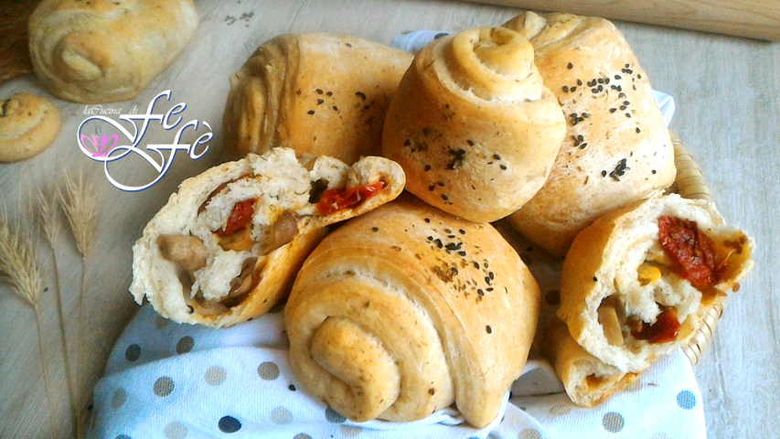 Il y a quelques jours, en expérimentant grâce à une amie la pâte pour pain-pizza, j’ai découvert à quel point elle est bonne et combien elle peut être polyvalente pour réaliser de nombreuses autres recettes gourmandes ! J’ai donc pensé utiliser la base pour proposer à table quelques variations, comme ces petits pains moelleux, ressemblant aux jumeaux siciliens typiques, mais farcis avec des restes que j’avais dans le garde-manger, à savoir des tomates séchées et des champignons mélangés à l’huile. Ils seront très savoureux et parfaitement adaptés pour un buffet, des petites fêtes informelles ou pour un repas à emporter ! Dans ce cas, il est conseillé de doubler ou même tripler les doses et de penser à des garnitures différentes en fonction des besoins. Excellents aussi comme idée pour une entrée rustique. Découvrez étape par étape comment les préparer et les garnir de façon gourmande.